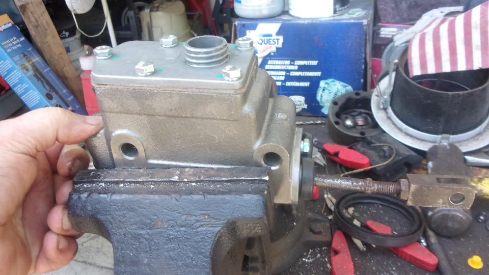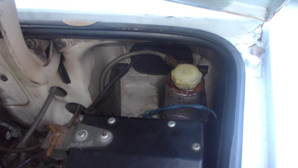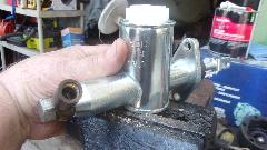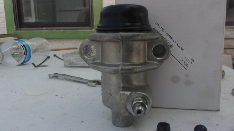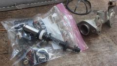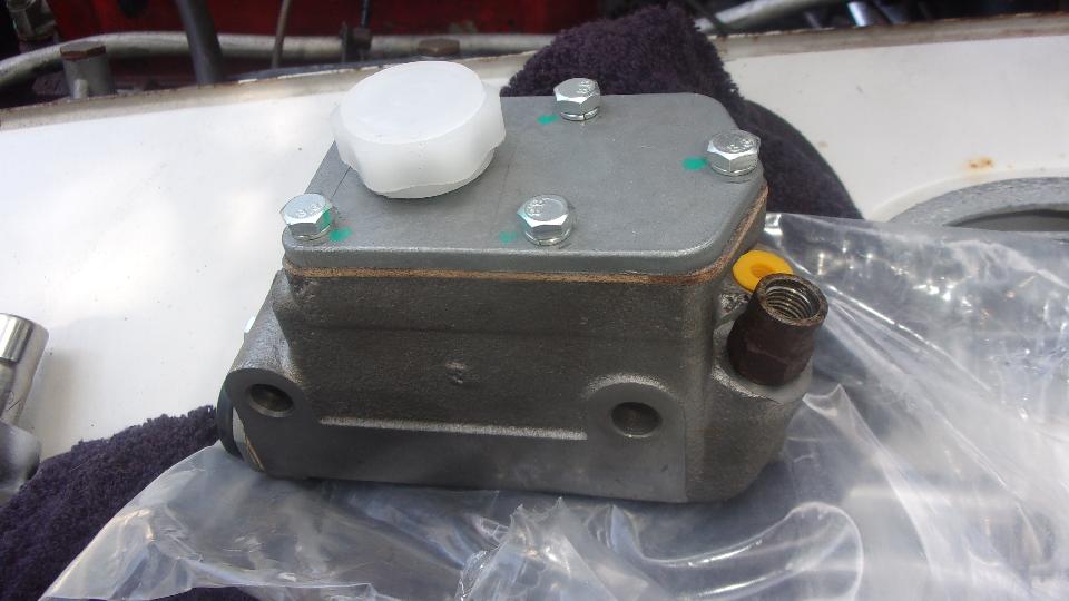 Finally got the old one out, transferred the banjo fitting to the new cylinder, quick bench bleed, and assembly is the reverse of disassembly. Back together and bleed, but not driven away. Must be more work to be done yet.