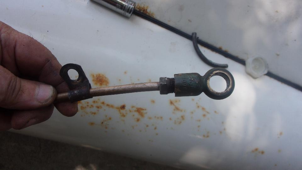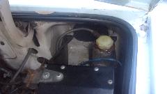 To much rush and impatience I think, so during installation they twisted a banjo fitting and broke the clutch pipe. Not able to re-flare a pipe with a tight bend, they cut off about 3-inches of the pipe, re-installed the flare nut, and re-flared the pipe, Then not able to relocate the pipe to get the missing length back, it was time to pull the pipe out and make up a new one. With new cupro-nickle steel pipe from inventory, it didn't take long to measure, cut and flare the pipe to install the flare nuts. And the cupro-nickle pipe is lots easier to bend by hand than the original steel pipe, so not too long to get the plumbing hooked up again (just a bunch of skinned knuckles).