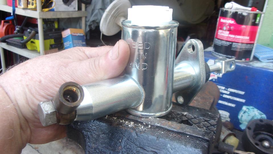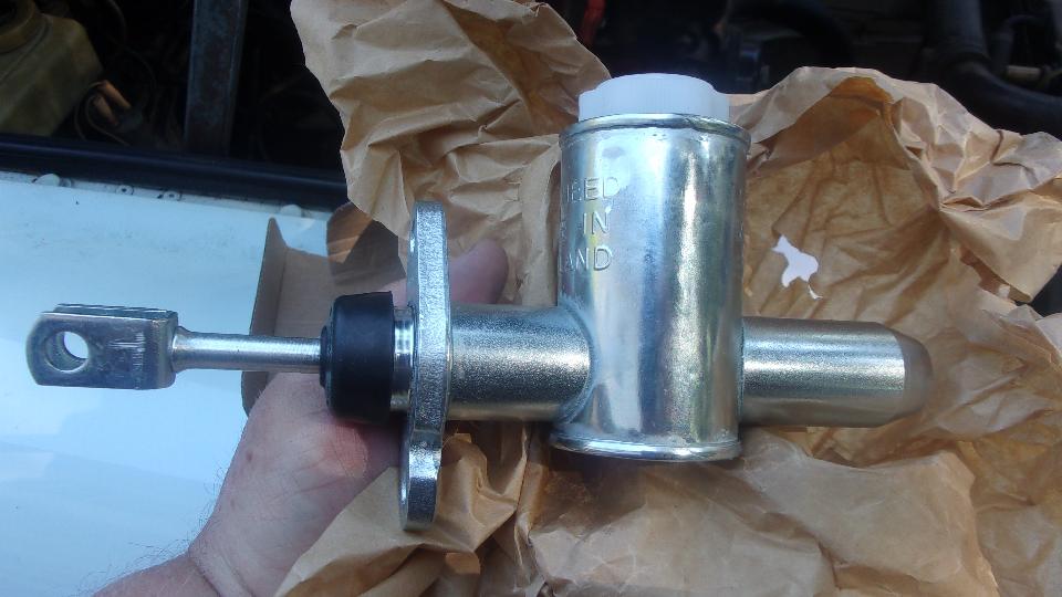 The white rubber bumper MGB is getting a new clutch master cylinder today from Moss Motors, a spanking new Lockheed UK unit (a Liberty Company), looking very nice.