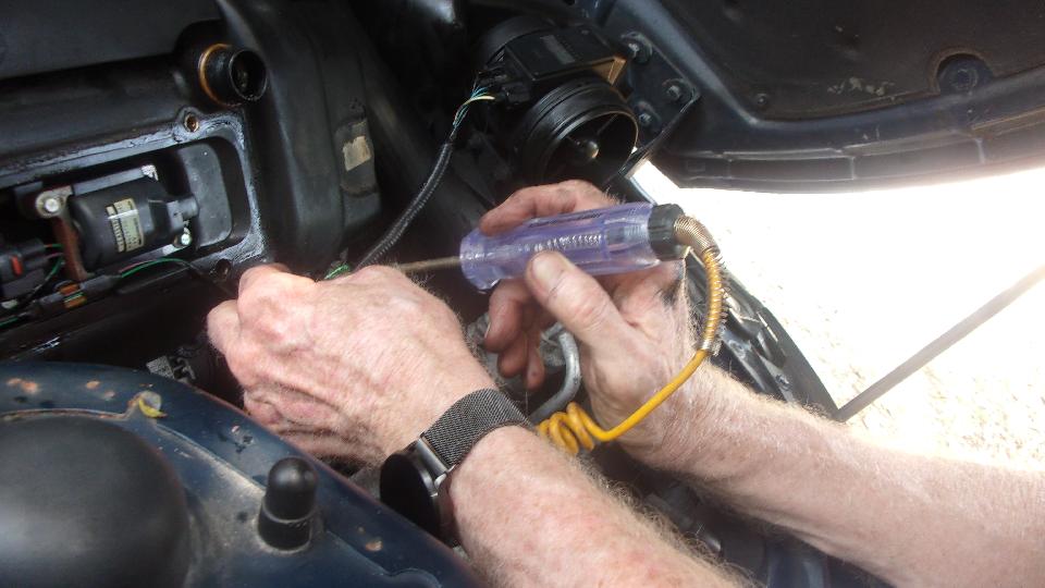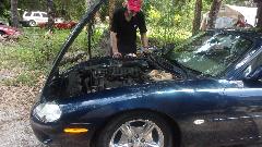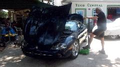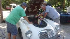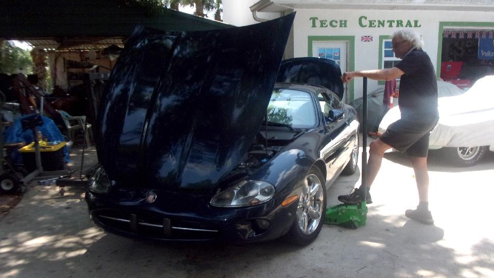 As we were finishing the switch installation two guys showed up to try again to get the Jaguar XK8 to run. They did have the CD with workshop manual this time, and were trying a few things to reset the ECU computer. They also spent some time on BBS reviewing the same problem. One suggestion was to let it sit for half and hour before cranking it again, which they did, but that didn't work either. Still no spark, and still there tinkering with it when we left. But they have lots of time and patience, so sooner or later for sure, they will learn the tricks and get it running.