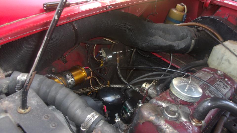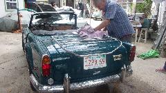 Added a few pictures on some tech pages for MGA Coupe interior trim, especially pertaining to trim piping. Then got a phone call beckoning us back to Tech Central for assistance with an MGA that just drove in with troublesome clutch and/or hard shifting problems. Good stories here, as the car has been circulating around among local friends for 30 years, and about 30 years since it was last repainted. Parking brake not working, missing all the 4-inch air hoses, misaligned bonnet latch, valve cover vent hose not connected to the aftermarket air cleaners, tail pipe touching the bumper overrider and rattling. Missing Car No. tag, and cannot read the chassis number on the frame, but the engine number looks original and makes it late 1958 production.