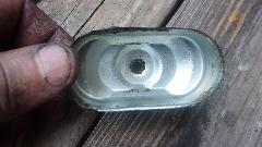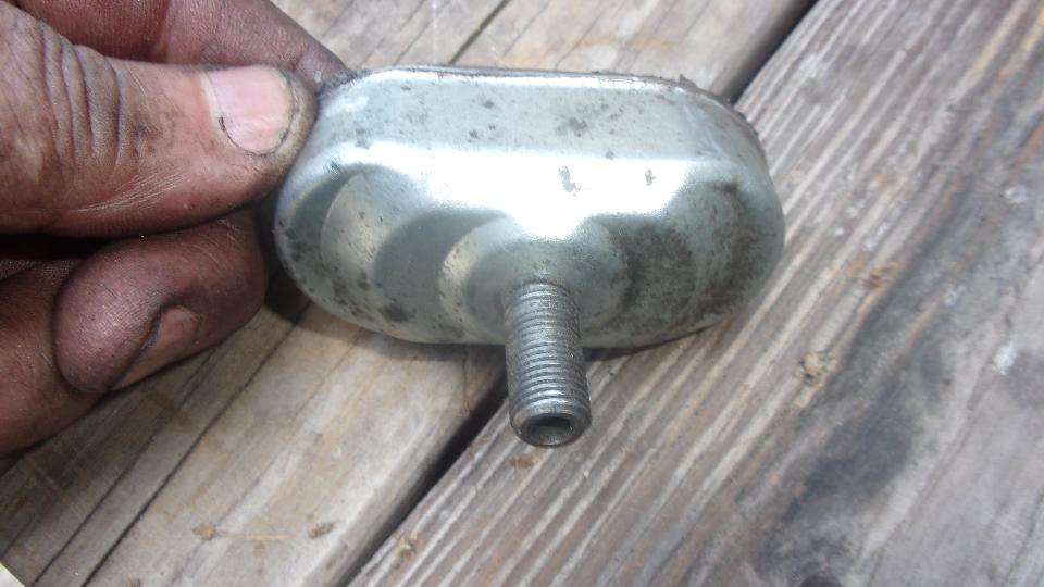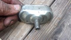 On the steel cover in front the threaded mounting barrel is similarly round and peened over like a rivet, also free to turn with trying to tighten the mounting nut. Impossible to install, and impossible to remove from the mounting bracket. This too should have a square shank.