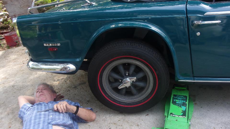 The TR250 comes back almost weekly, still concerned about a lot of oil leakage on the left side of the engine. First thought was timing cover seal leaking, but it actually looks pretty dry up front. Valve cover nuts were only finger tight, so we cranked those down a couple of turns and spray cleaned the engine some. Will be interesting to see what it looks like next week. Adjusting the rear drum brakes, we found a loose wheel bearing (wobbly wheel) in the right rear independent suspension. Get to ordering parts, and that might be next weeks job.