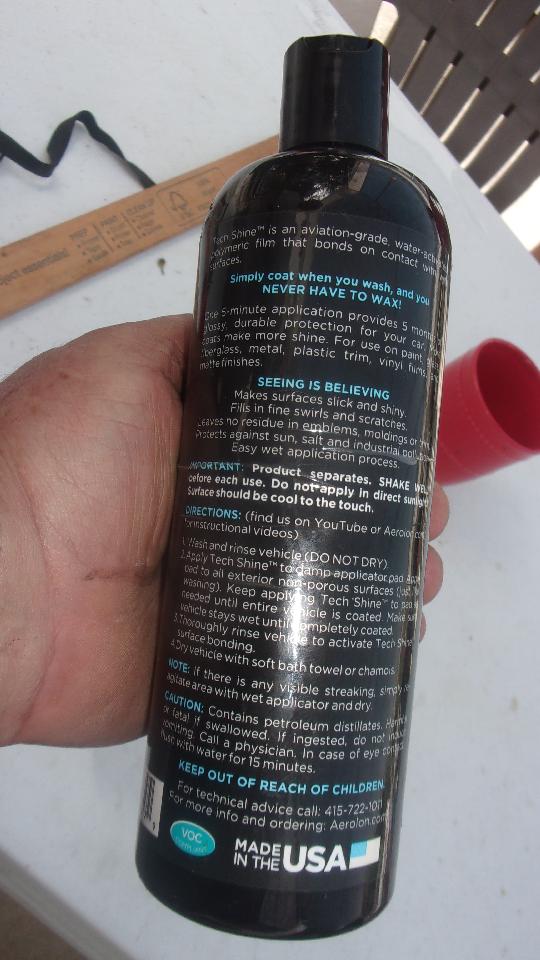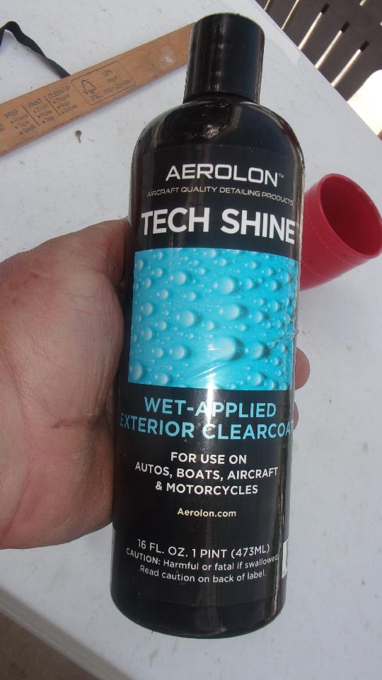 Then they were trying a little spit shine and polish on the TR250 with a nice product called "Aerolon Tech Shine". Spry it on and wipe ot off, and it's done. Dump water on it, and it beads up and runs off. Nice trick with very little work. It costs about $30 a bottle, and no one knows what's in it, but it might be a decent value for the money.