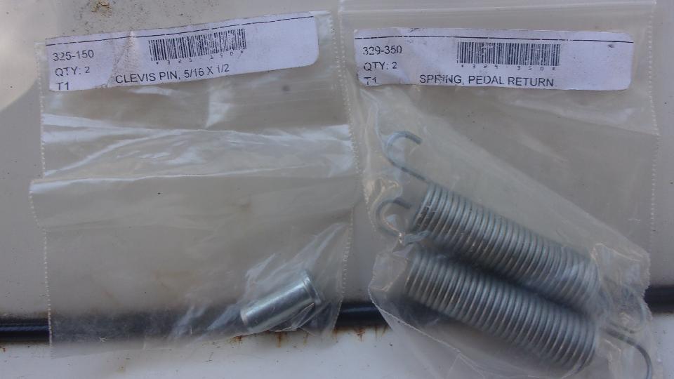 Got the clevis pin out of the magic trailer, along with a pair of pedal return springs. Everyone should know what a PITA those are to install while crawling under the steering column.