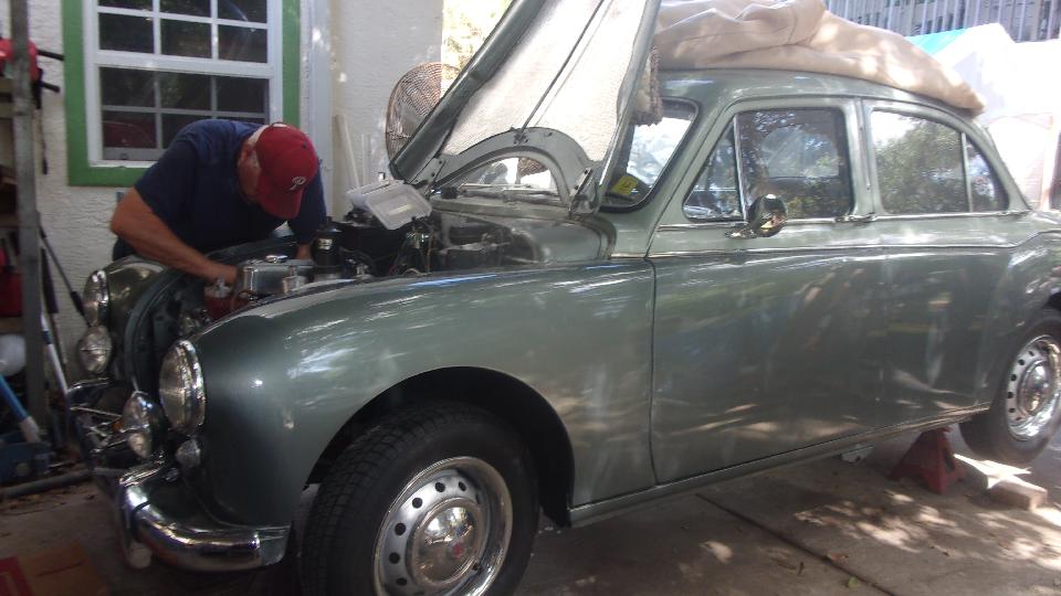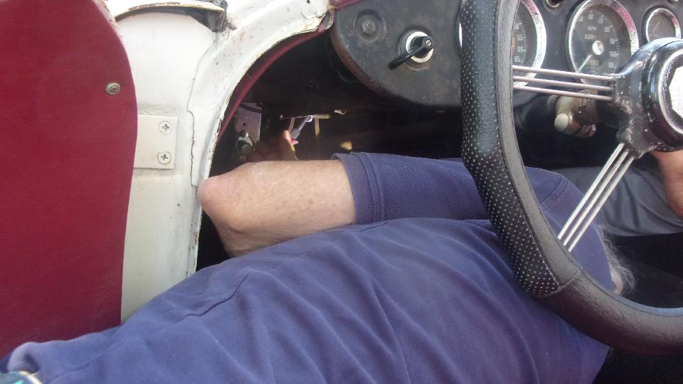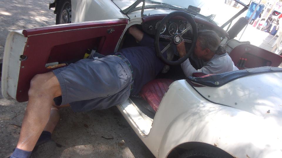 This would be maintenance day, so we took the MGA back to Tech Central for a nice place to work. We were expecting a few more people to be there, but no one there when we arrived at 10-am. The starter switch had been giving increasingly worse problems for the past couple of weeks, so we would change the switch, but not while the engine was hot. The other small task was to change the rear bumper overriders, for which we have been carrying new ones around in the boot for a full year (mostly taking up space and getting in the way as a daily reminder that it should be done).