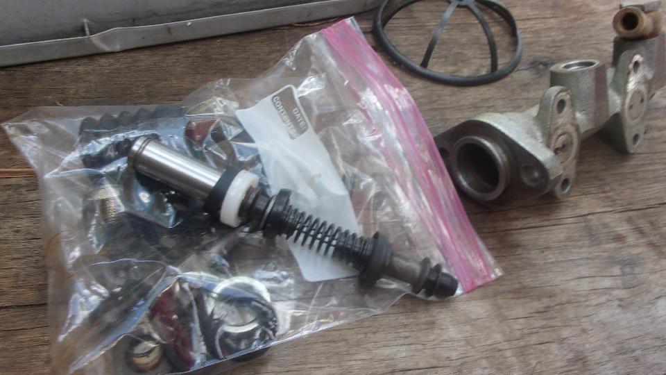 On quick review, the white MGB finally had its clutch and brake master cylinders and power servo reinstalled, and they were bleeding all the hydraulics. The ZB Magnette had the new 1800 engine and overdrive gearbox and propshaft all bolted down, radiator and carburetors installed, now getting the ignition parts hooked up, very neat to start and test driver. There was a late model MGB dual circuit master cylinder, I think for the MGB wannabe race car, It was disassembled for rebuild, but they had the wrong re-packing kit, so asked me if I could put it back together using the old parts. After referring to the Workshop Manual and Service Parts List and explosion drawings, I had all the parts laid out in sequence, only to find two parts missing. One was a rubber seal cup that would be part of the next new repacking kit. The other was a thin metal washer next to the missing seal cup, and that part is listed as "included with the master cylinder", meaning you can't buy the washer by itself. Will have to look around some, or otherewise scavenge one from another used master cylinder. No sense reassembling it with missing parts, so bag it and tag it, and toss it into the boot.