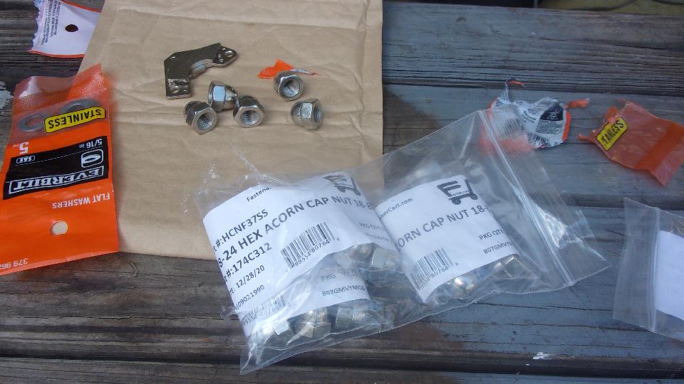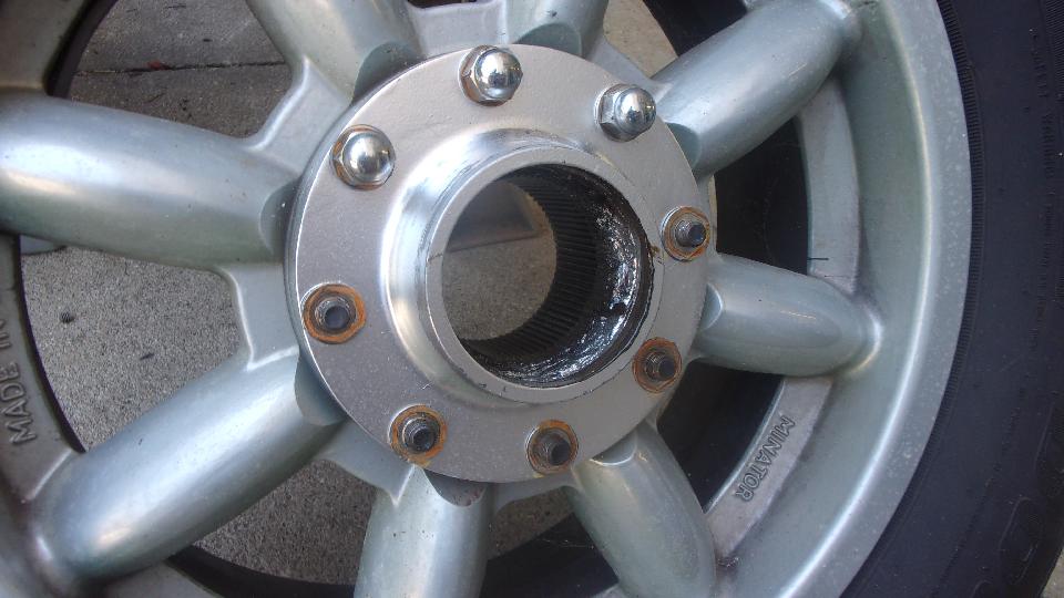 The green MGB was getting some new stainless steel acorn nuts on the splined wheel adapters to replace some rusting plated steel nuts.