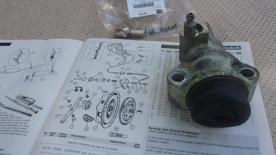 This morning I jgot busy posting up Fridays tech session photos and notes. I was just too buggered from the heat to do it last night. Then about noonish as I was reviewing yesterday's pictures I nearly jumped out of my chair and said "We gotta go back to Tech Central". Huh? One of the pictures was the disassembled MGB master cylinder, which made me remember that I got distracted with other things and left all the parts lined up on a bench outdoors Boo, hiss. We hustled back up there to bag and tag the parts, and to leave a note telling there were two parts missing, which is why I didn't reassemble it.