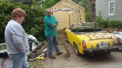 Done for the day. The Magic Trailed had provided lots of tricks and tools and a few fasteners, and it took a while to get all packed back together. I headed back to the cabin, while Tom and Kathy ordered up a late lunch (or dinner) and brought it over to the cabin for a short visit and chat session. All is well that ends well, a beautiful day, good friends,and another MG back on the road.