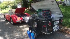 Okay, we're out of here before I buy something serious I don't have time to do. The fresh distributor works well, and I think the working vacuum advance gives the car better character at expressway speed and half throttle. We were doing hills in northwest Tennessee and sailing through western Kentucky for a couple hours doing 70 up hills and a fair amount of 80 on level, and a bit more down hills. Another stop in Paducah, Kentucky, to pick up engine oil and fuel, and it figured to be 20.3-MPG hauling ass through the hills with the trailer. That looked better than what we were expecting, but it did consume a quart of oil in 230 miles, so maybe it doesn't like 4500 rpm and full throttle for hours on end. Will make a point to keep it under 75 for the next tank of fuel for comparison.