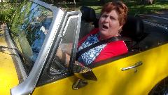 Off the stands, on the ground, roll it out, and start packing tools away, while Kelly gets to take Mr. Tony for a spin around the block. Of course Kelly has long been used to driving the car with no rear brakes (unknowingly), allowing plenty of stopping distance, so no problem here. Soon back withe big grin she said, "I'm going around again". I bet you are, and off she went. Next time back she said the brakes work just as good as they always have. Okay, they work good, but we will make then better with a new rear hose, after which she might think she has power brakes. Maybe the only thing that stopped the cruise was hunger.