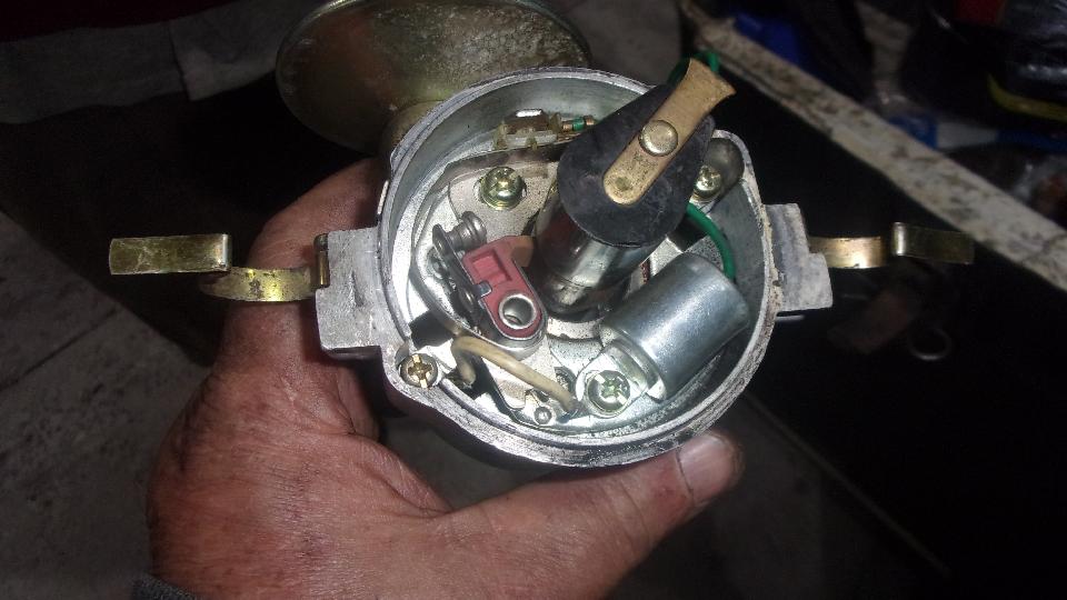 Pull the junk distributor out of the engine, and some spare distributors out of the Magic Trailer. The long cherished Mallory distributor 30 years in service had been tossed some time ago when service parts became extinct. Lucas distributor from 30 years earlier was in place after Mallory for a short time until the vacuum unit was found faulty. One more savior in hand was a nice used Lucas distributor that we received as a gift a couple years ago, long on the shelf and a bit rusty, but otherwise in surprisingly good condition.