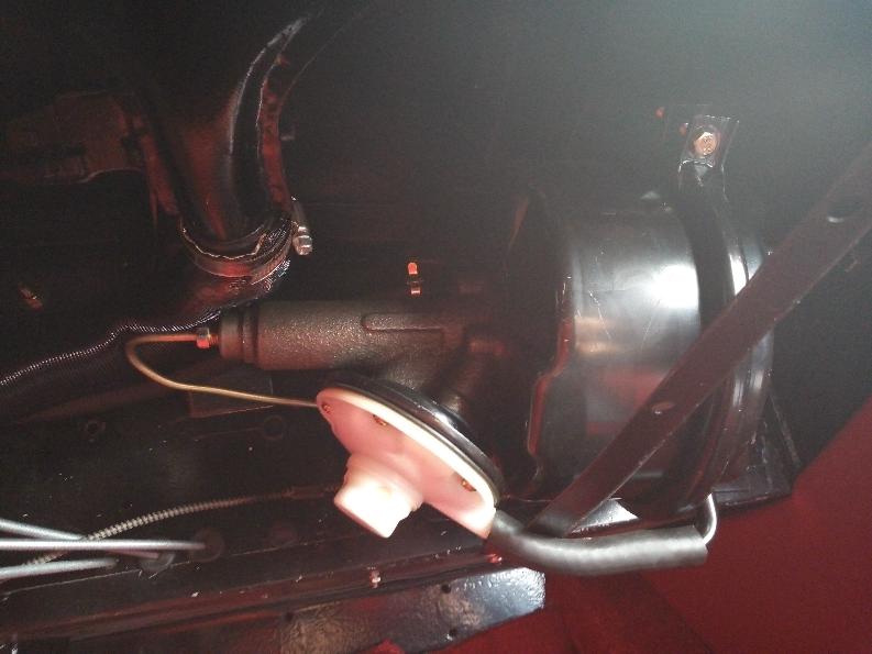 Morning discussion about brake calipers that do not release, in combination with a new remote power servo installed under the dash. With one fuzzy picture it looks like the servo is mounted almost level, when the instructions call for 25 to 45 degrees up angle on the output end. Maybe try tilting the car for initial bleeding to get the air out of the servo. But otherwise this one may be going back for some rework on the servo mount.