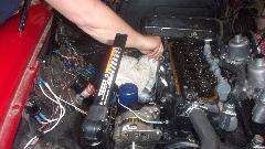 Half through the evening, about the time we ordered pizza, Thomas Pokrefke showed up with another MGB sporting a fresh 3.4-L V6 electronic fuel injected engine (with air conditioning). That was jolly good fun. Not quite finished, the ECU in the engine bay would eventually go in the right side wing, and maybe the three ignition coils could find better location, but for now it ran okay, so smiles all around. I really have an urge to put one of these in my MGA, but with a carburetor to avoid all the electronic stuff. Okay, time to call it a night, and dream on.