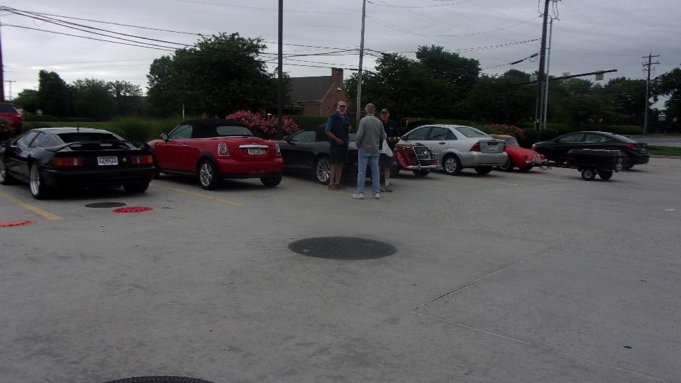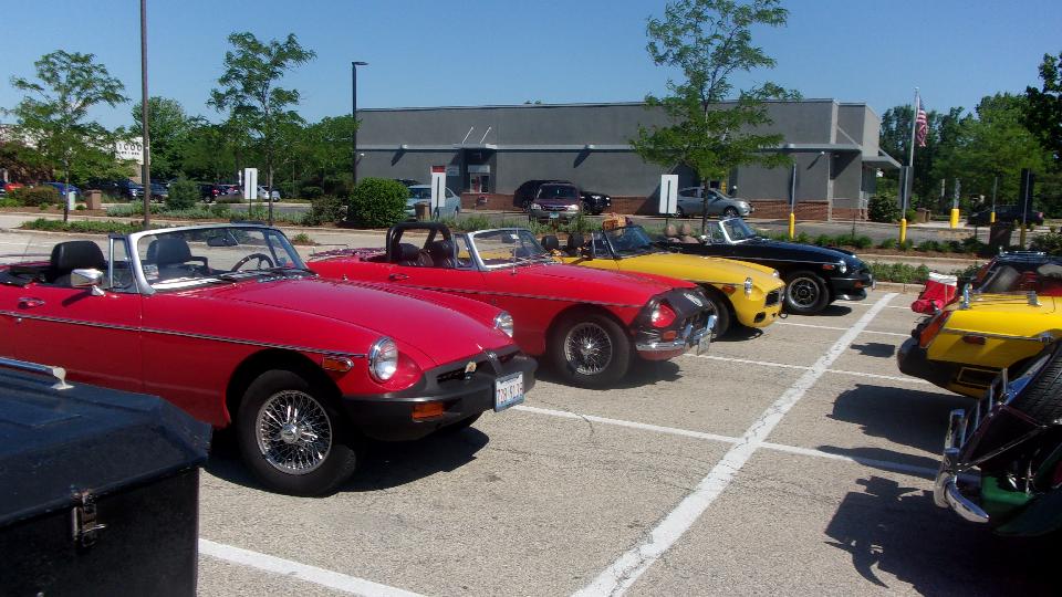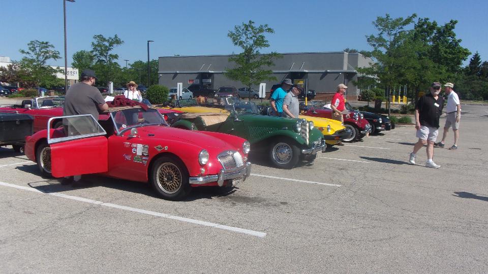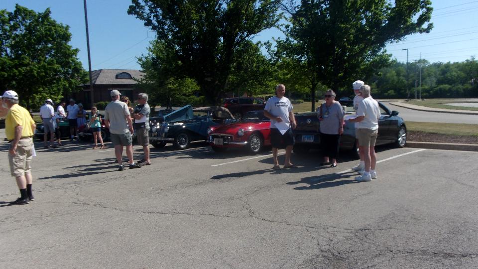 Primary chore today was to participate in a gimmick rally called Lake County Fun Run with Chicagoland MG Club. Starting in Libertyville in the NW suburbs. Near as I can count from the pictures, 15 cars to start.