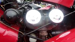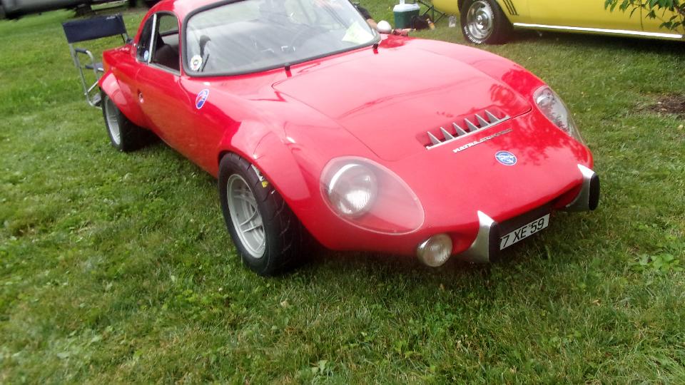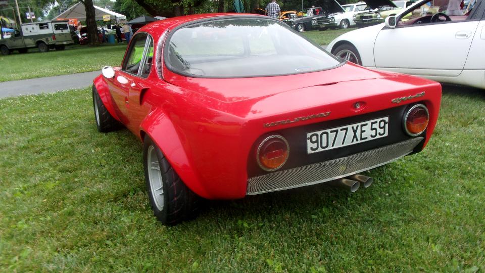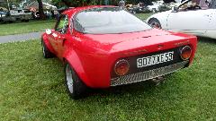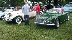 This little sport caught my eye, as we always find something never before seen at any random car show. It is a 1965 Matra Djet 5S, a cute little French car, belonging to Jim Hanna in Chester Springs, PA. It's claim to fame is being the world's first mid-rear engine production car. Engines were in the 1000cc to 1100+cc range with top speeds up to 120-125 mph due to light weight (around 1400 pounds) and good aerodynamics.