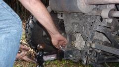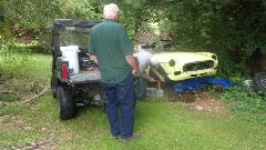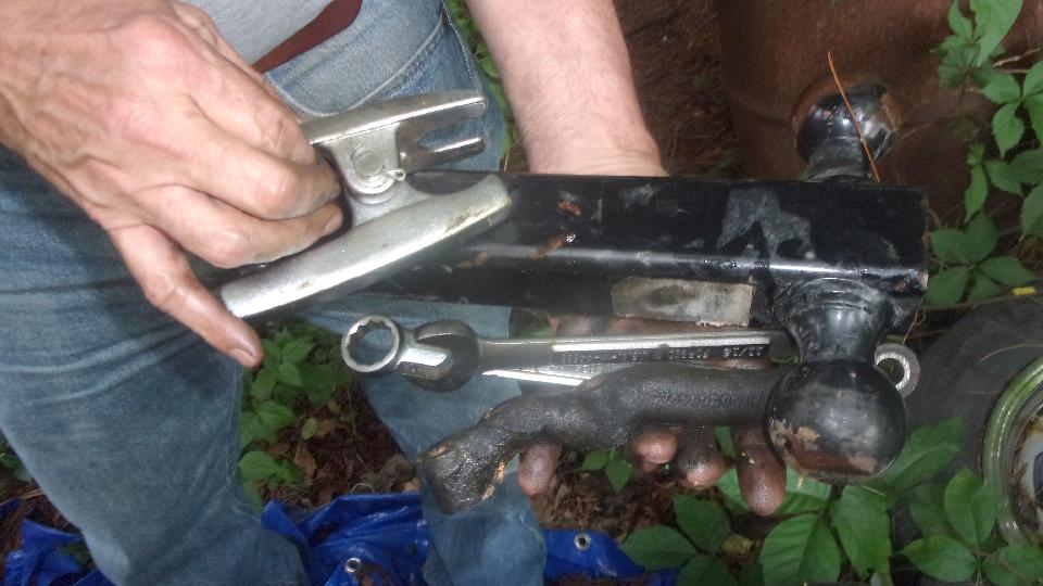 Attack the other side with vigor, and in short order we got the booty. Return the big double sided ball-pein hammer to the receptacle in the trailer hitch.