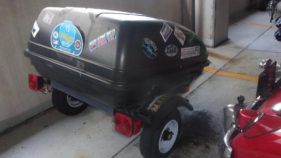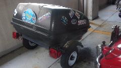 A well traveled trailer, and an MGB with lots of bling under the bonnet.
