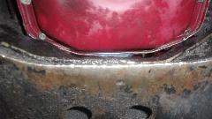 Then we were after welding up a few cracks that were negligently left over from the same prior body work (and maybe a couple more from the recent shunt). Weld, grind, weld, grind, getting there.