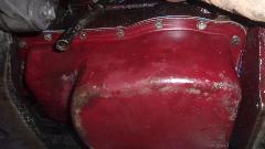 So here are the pictures after the rust converter application. Man, that stuff really works. Instructions say there must be some rust for it to work, but holy crap, I didn't think there was that much rust left. Even the surfaces that appeared to be clean sheet metal had turned black. Then the part of the instructions that disappointed me, saying wait 24 hours before overcoat.