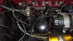 Late night by this time, and a couple of supervisors about to call it a night, but we were going to try cranking it up. Grinding noise? Oops, fan shroud touching the fan blade (one of the helper's mistakes). That killed another 15 minutes realigning the fan shroud. Less than a minute of cranking brought up oil pressure (big grin). Key on, fuel pressure up, apply a little choke and a bit of throttle, and give it a serious crank. Wonderful cranking, but no fire, not even a single pop, and the bottom instantly fell out of the enthusiasm. It was 11-pm, everyone hot and tired, so we called it a night before trying to do diagnostics (when we were all tired and might be making mistakes). Okay, clean up a bit, grab a clean shirt, borrow the Morris again, and head out to catch some sleep.