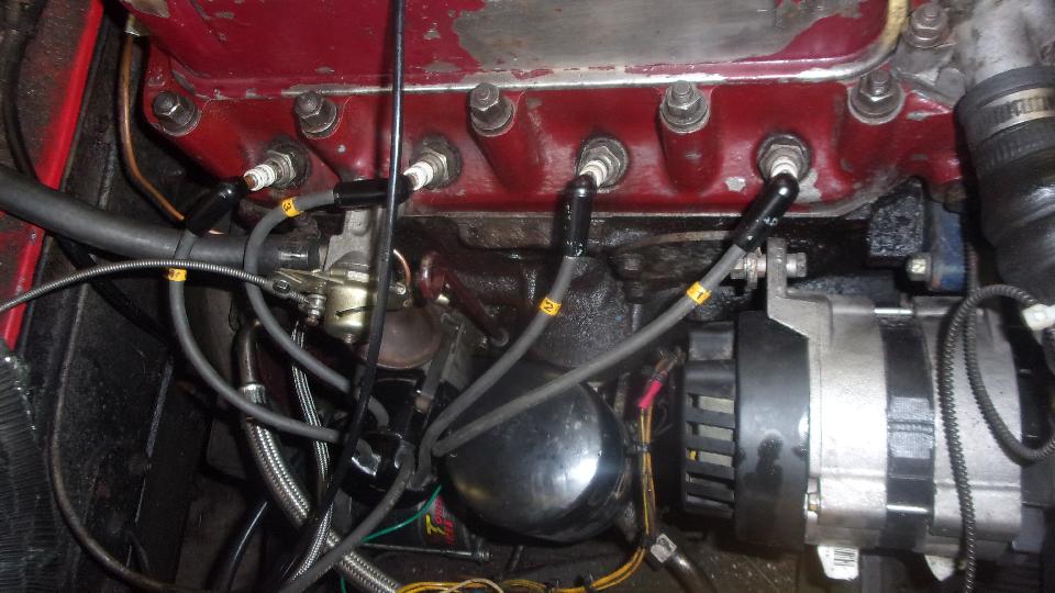 Nice working weather today, so back to the garage and start with diagnostics. Cover off, check valve clearance and valve/cam timing, all okay. Spark looks okay to me, but navigator is bugged about bad condensers, so I jump-wired in a new condenser, got very good spark, but still no fire. And it won't even start with a sniff of starting fluid. Scratch head, and do a compression test, just to be sure, Say WHAT??? Nice regular 60-psi compression on all four cylinders, and discouragement hit a new high.