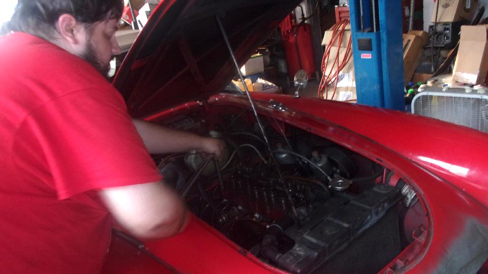 Back to Darrell's shop with the MGA, no one there, so we took the opportunity to run the Morris to the local shop for some non-alcohol fuel. Then off with the MGA valve cover to re-torque the