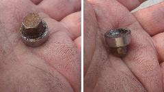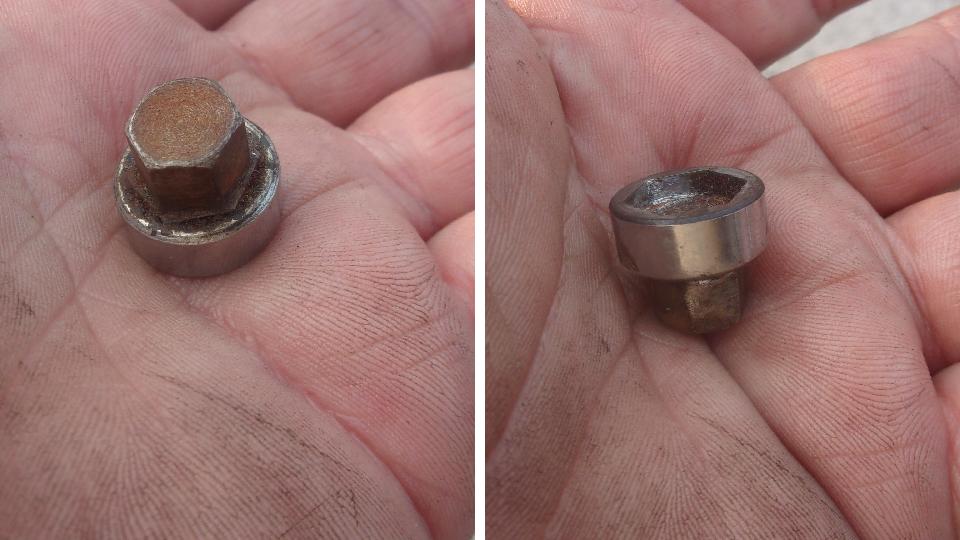 Here we have what may be the world's lowest profile wrench socket. It began life as a standard 7/16 socket, cut down, welded together with the hex rod, and re-machined to