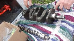 Not going to fire with 60-psi compression. Generous oil in the cylinders brought compression up to 90-psi so we gave it another good crank-over, and it finally fired a few times, then began running weakly, and quickly picked up running on all four cylinders. Huge cloud of white smoke out the tail pipe of course, but that would abate in a few minutes. Enthusiasm picking up, as we will not have to disassemble the engine again, just keep it running for a while. Set idle speed to 2000-2500 rpm, and let it run at least 20 minutes to bed in the cam and tappets, and be sure the tappets will continue rotating.
