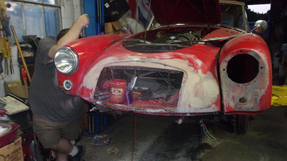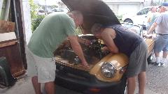 The rest of the evening turned into mostly a social chat, and some discussion about the weather (hot and stormy), and maybe Friday would be the best work day (cooler and dry) to finish the nose job on the MGA.