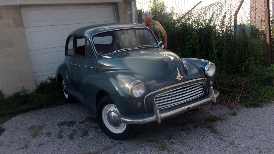 cylinder head and re-adjust valve lash. Yeah, that's navigator running the wrench, getting pretty good at torquing head bolts in the correct sequence. Quick job, put the car back outside, still no one there. Couple of phone calls and another half hour wait, and two more folk showed up (including Darrell). We had a little discussion about needing a bit of brake work on the Morris, but it didn't get done. Did some shop cleaning, removed some old motor oil (55 gallons) for recycling (actually to be used as heating oil for the shop across the alley). Got late, near dark, still hot, so had a nice break outside, until it got to be later. All good intentions, but not much done. Will come back tomorrow night for the weekly gang meeting.