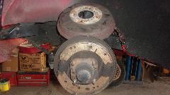 Then our favorite superisor Jeff showed up in Tuesday's project, and we still can't wipe the grin off his face. With the Morris and the Van fixed, and a bit of open shop time available, we put the MGA on the lift to pull the wheels and adjust the brake shoes. And while at it, take the opportunity to repack leaky brake slave cylinders on the right front. Yuck! No wonder it would pull right and lock up prematurely. And we also replaced the front brake shoes. Looks much better when cleaned up, reassembled adn not leaking.
