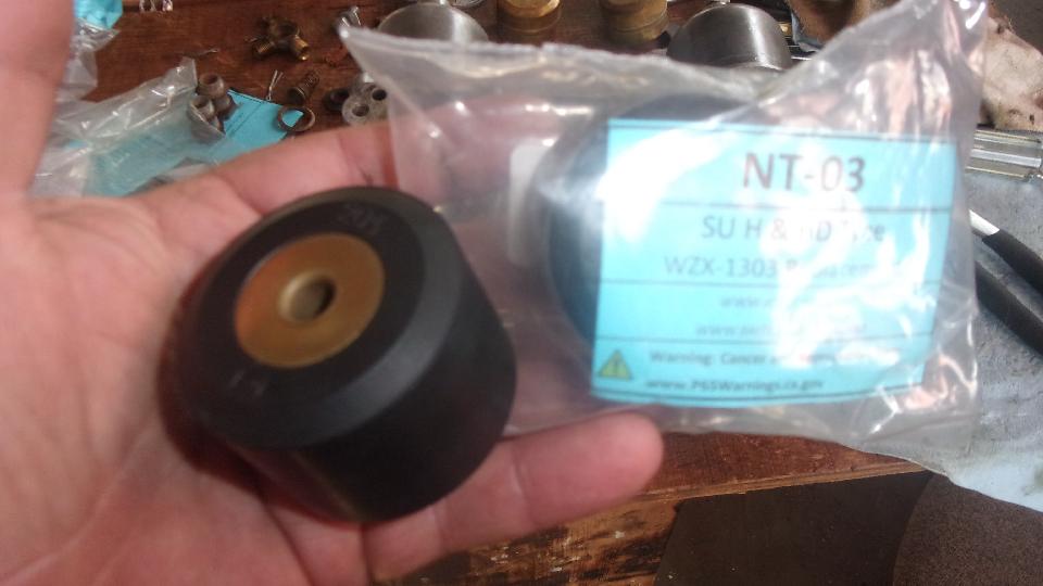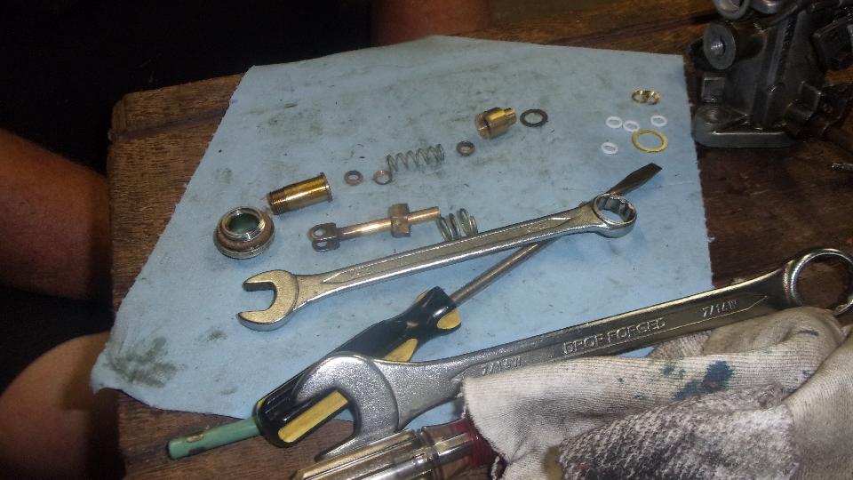 Lots of curious noses here with lots of questions, so the one-hour carbs rebuild was going to take a few hours. Gotta love it, this is what tech sessions are all about, scratch and sniff, and teach a dozen people how SU carburetors work and how to rebuild them. These had been reworked before, and maybe never put in service, as they were certainly not functional. Both carbs were missing the thin copper seal washer on the lower jet bearing (would definitely leak fuel out the bottom), and one was missing a constriction washer on a jet seal (spring pressing directly on the soft cork seal). On the plus side, they had Gross Jet float valves installed which we will opt to keep. One of the original brass floats was sloshing with fuel inside, definite leak and a sinker, but we do have new Nitrile rubber floats (yes Nitrile NBR synthetic rubber, not plastic, look it up), so good to go. Two complete rebuild kits in hand, including new jets and needles, so no worry about the old jets and needles being worn (just toss them out). Missing some of the internal tooth lock washers for dashpot cover screws, so pull some of those out of the Magic Trailer, along with some Teflon O-rings for the jet seals. Nice to have a couple of real Whitworth wrenches in hand, no need for the more clumsy adjustable spanners.