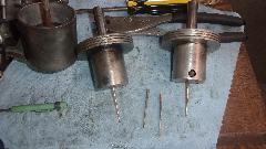 Okay grab two alternators and some tools, transfer the pulley and fan to the new spare alternator, and go after drilling out one odd metric thread and installing a 5/16-24-UNF Heli-Coil for the bolt attaching the adjuster bracket. Then I asked Darrell if he had any suggestion for the failed alternator that needed a regulator circuit card (the Moss didn't want to pay return shipping), and he said. "Yes, give it to me". So I did. He works in an auto parts store (part time), so either this part has a nice core return value, or he may know how to replace the internal regulator that is supposed to be not field serviceable, but only factory rebuildable. Have to ask him later what he's doing with it.