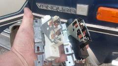 Dodge motor home last night, and we were supposed to be working an brakes of the Morris Minor now. I guess the replacement ignition switch was on order, so they fixed up the Morris last night (stops well again), and we got to work on the van now. Had to drop the steering column, because the push-rod driven starter switch was farther down from the key switch, and the starter switch was hiding inside of the columm mounting bracket. Aside from a few skinned knuckles, we got the job done okay. We also took advantage of the situation to R&R the instrument cluster to replace illumination bulbs (a whole box full of them).