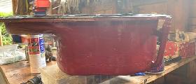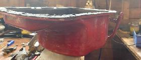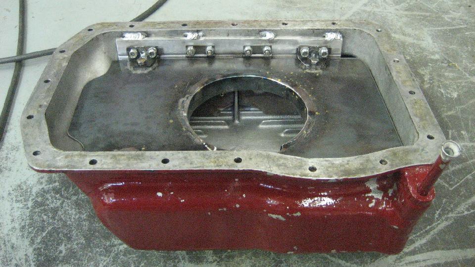 This gets better every day. Now we have a picture of an original MGA Twin Cam engine alloy sump with a hand fitted steel oil surge tray (one of a kind).