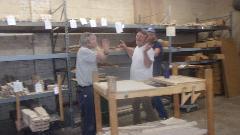 We took a tour of the factory where they have planers and jointers and routers and saws and wood working tools of all sorts. Pretty big for a wood shop. We saw at last four hands on workers on the factory floor in addition to two live souls in the office. Third picture below must be the shipping and receiving area.