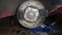 We eventually got the cylinders replaced on the right side, but out of frustration decided to leave the left side for later. But we did get new brake shoes install both sides in front before putting it all back together, and finally were done and out at 8-pm.