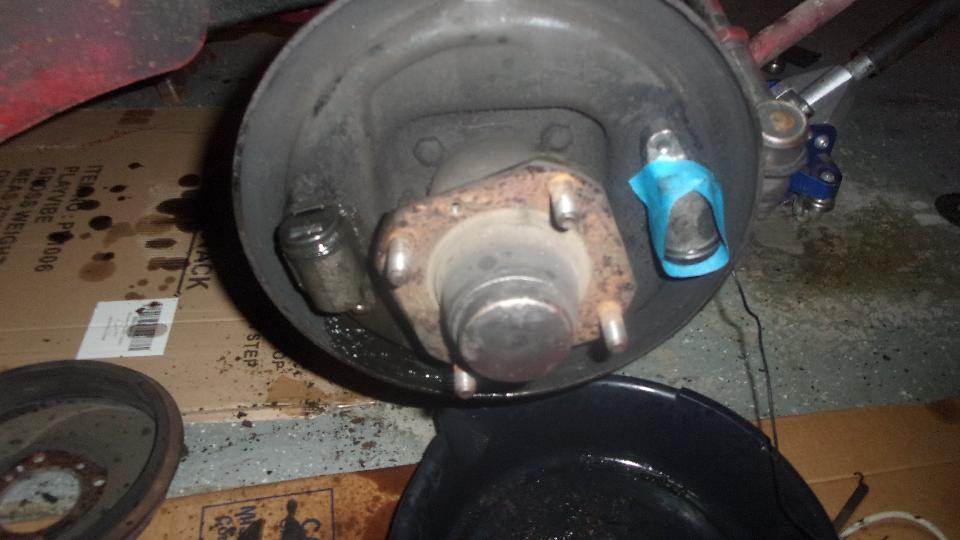Still some time and energy left, we decided to replace the leaky wheel cylinder on right front, and do both at the same time, That was going well until it came time to start screwing hydraulic fittings back together, when one of my pet peeves for "cheap" replacement parts jumped up to bite me. Ports are drilled and tapped, but there is no lead-in chamfer for the female threads. Male threads are properly cut, except that again there is no lead-in chamfer for the threads. This makes screwing thr pipe ends into the cylinders a real bear of a job that may often take hours instead of minutes. Sorry, but when things are not going well I don't have time to take pictures.