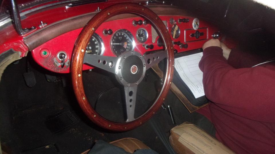 Meanwhile navigator was installing the new Classic Gold steering wheel. Nice, huh? That's to replace the broken Moto-Lita wheel that was in service since the mid 90's.