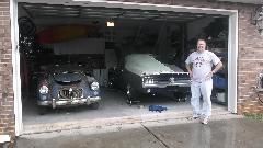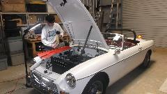 Today we toddled over to George's "basement", a storage facility five miles away. We came to visit "Angie", the 1966 MGB with a Weber carburetor and alternator. We had a bit of tune-up work to do here and found a few small issues in the process. It started with almost no choke, was running rich, had a black tail pipe and uneven idle. A couple of the resistor type spark plugs were too high on resistance, and a couple of the HT wires were also high on resistance. One plug looked like no fire so we did a compression test. One cylinder was low on compression, but after some cranking it came up some and after some running it improved a lot. That was perhaps stuck rings from not running often enough, promise to drive it more in the future.