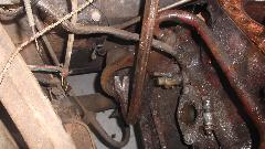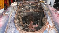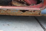 We spent some time analyzing condition of the car in general. Body sills are shot and need to be replaced, but the upper body is in surprisingly good condition (allowing for peeling paint and surface rust). Floorboards are shot, but the frame is also in surprisingly good condition and very straight and solid. Every bit of fabric is shot. Plan of attack should be to set the engine aside for last part of the restoration and replace the body sills first, before removing body from frame.