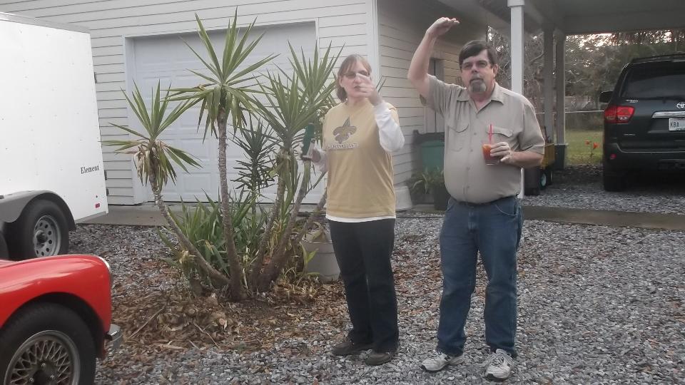While everyone else was heading back to their respective hotels, we were heading south to rural Fairhope, AL, to visit George and Lynette Whitley. Hey, we've been here before, but were invited back again, along with a small ulterior motive. Navigator left his hat here, the one with the LED head lights that works well for map reading at night, and it seemed worth the effort to retrieve it. Chat about cars and clubs and web sites until nearly midnight, and then I get to chase these photos and notes before turning in.