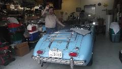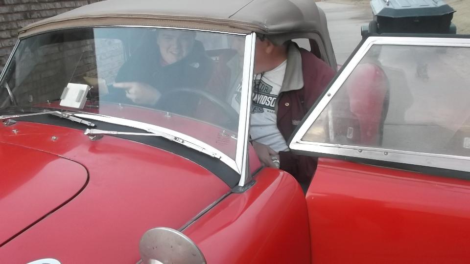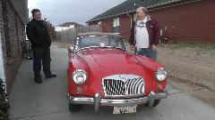 My car is only the third MGA Eric had even seen "in the flesh", and he had never driven or ridden in one. I wouldn't want him to spend a lot of time and money on restoration, then ultimately discover he doesn't like the car. So I got him to drive mine (vigorously) for about 15 minutes. Yee-Haa! I think he's hooked. And he has new determination to get that Mustang finished so the parts won't be mixed up or lost when he gets seriously into restoration of the MGA. Off to lunch before Eric ran out of time today, followed by a quick phone call, and then we were off to our next appointment.