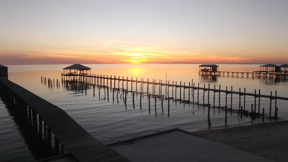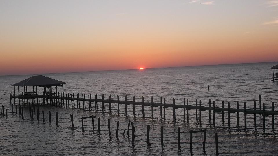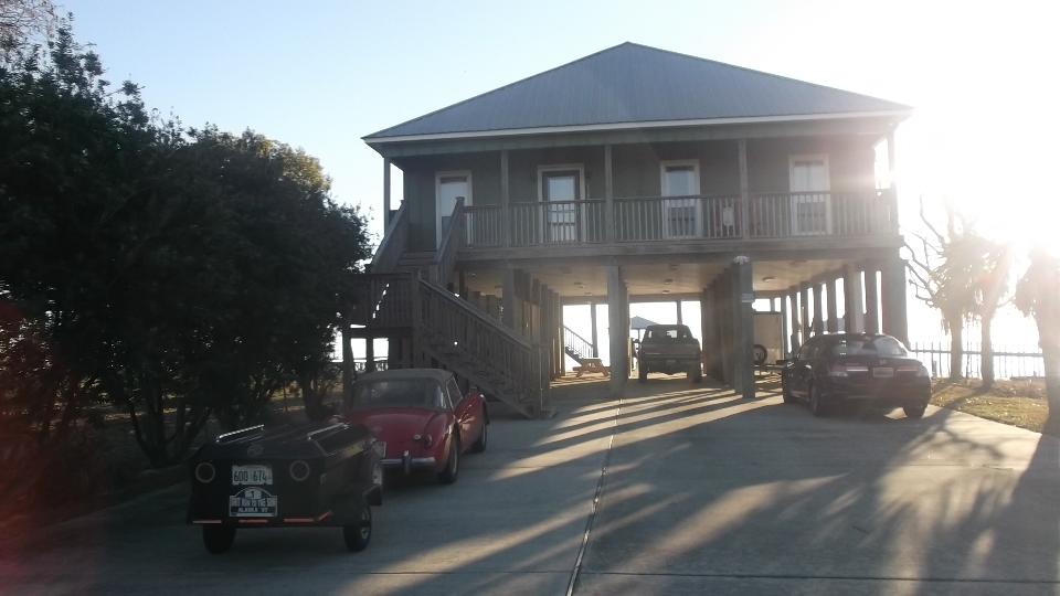 Once the meeting broke up we were warming the car up when we were approached with an offer to stay the night, which is hard to refuse when it's cold and raining. Not that we would have refused anyway, as that's what this trip is all about, meet, greet, and chat about MGs and British cars forever. So we follow some Honda tail lights down AL-181 (hurricane escape route) somewhat farther than might be expected, a bit over 20 miles farther south (which is why we fill the tank before the club meetings). I didn't know the land went that far. Now say hello to George and Lynette Whitley in rural Fairhope, Alabama, down on County Route 1, once again overlooking the Gulf of Mexico and listening to the waves gently splashing. You know the routine here, late night chat until the hosts drop out one at a time, then a couple hours of WiFi work (so you can see the trip notes) before I crash.