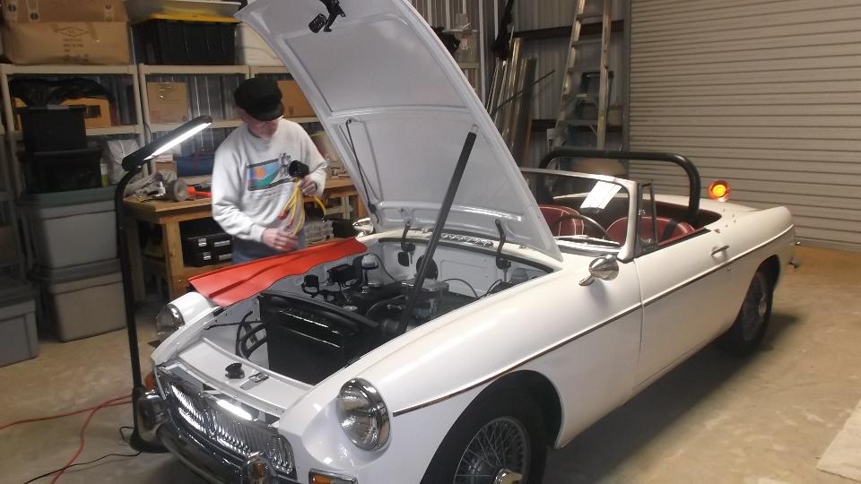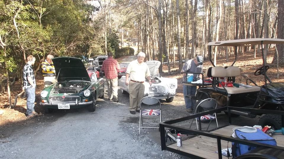 So, you're eyebrows just popped up? Columbus GA, again? Yes, we have been here a few times before. First visit was 11/21 to 11/25, then again 11/30-12/7 then again briefly on 1/25 (see prior notes). You may recall there is this hand full of MG enthusiasts residing substantially south of their "home" car club the Peachtree MG Register in Atlanta. They seem to have lots of enthusiasm, and lots of things to do with their cars, and Atlanta is just too far away for regular commuting. So they have reached out to some more British car enthusiast friends and have formed a local coalition of common interest. There is now a new Facebook page and a new group name for "Brits In The Valley" (referring to the Chattahoochee River Valley). Their first official meeting was Saturday Feb 7, 2015, at a local restaurant and there are already a couple of hand fulls of enthusiasts. Today we have their first collective tech session at the home garage (workshop) of Larry Stephens in Columbus.