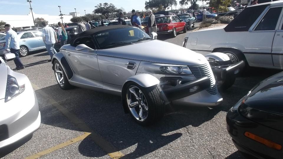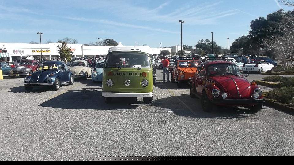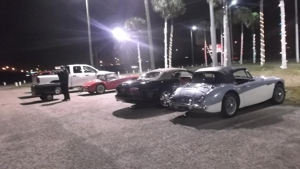 Today we had a morning rondevous with Mardi Gras MGs British Car Club in Silverhill, AL. Five cars (eight people) joined for a caravan to Pensacola FL. There we joined a rally (with about 100 cars) co-sponsored by Panhandle Cruisers and Pensacola Austin Healey Club.