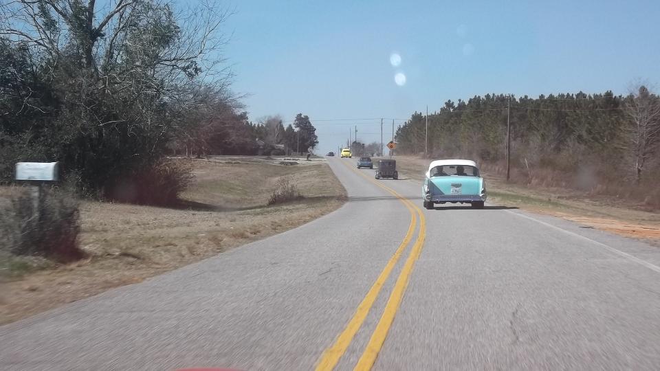 The rally (tour) was to run 56 miles from Pensacola, Florida to Atwood, Alabama, traveling some scenic side roads. Since we had complete route instruction for this one, we struck out on our own to enjoy the casual cruise through the rolling hills and forests. It was a fairly quick trip, pressing along near the speed limits. Seems like we caught up to the Chevy club near the end.