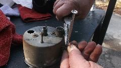 We then removed the generator, starter motor and oil filter for best access, and went to work on the flywheel ring gear with a large crow bar. Pushing and pulling, rocking the engine, bending the crow bar, but still no joy. This engine is officially frozen and will have to be disassembled to beat out the pistons. But it's just some mechanical work, now a job for another day. Does that mean we failed? At least we did the diagnostic work and came to some discoveries and conclusions.